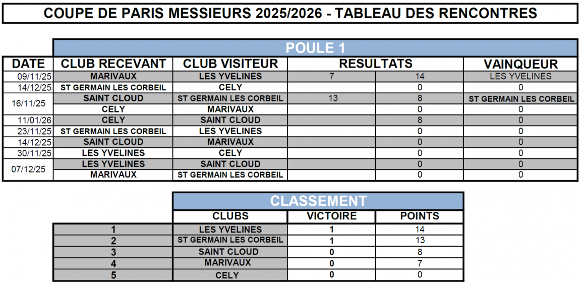 Cette année les informations de la Coupe de Paris Messieurs et Dames sont regroupées dans un même article.