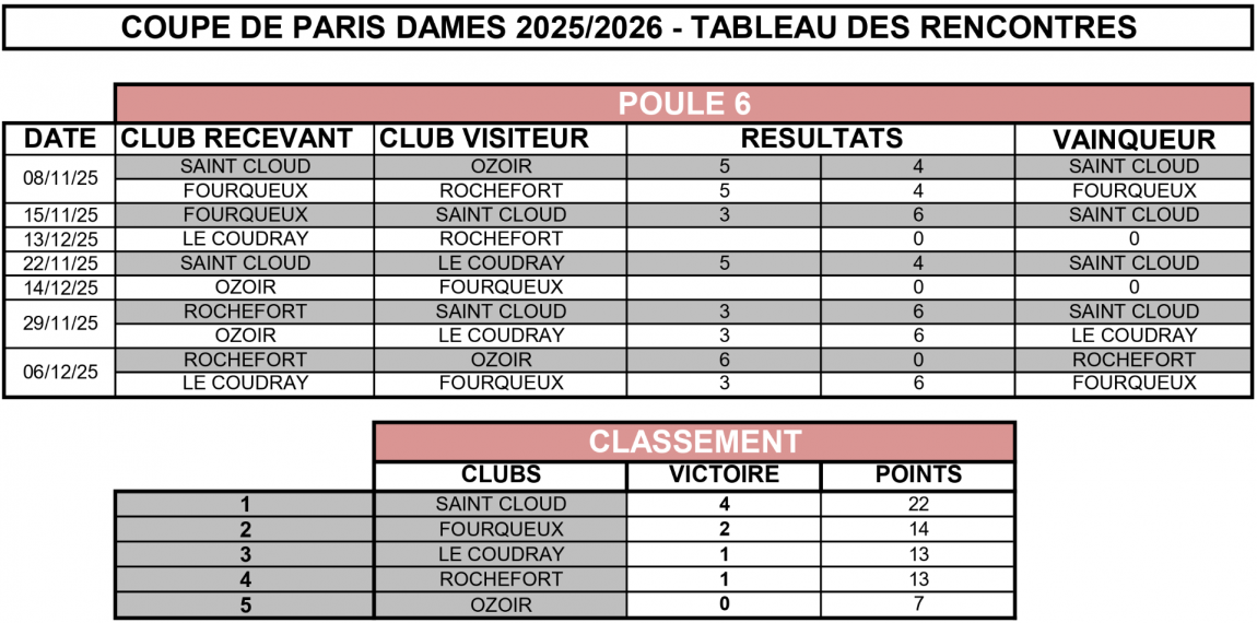 Cette année les informations de la Coupe de Paris Messieurs et Dames sont regroupées dans un même article.